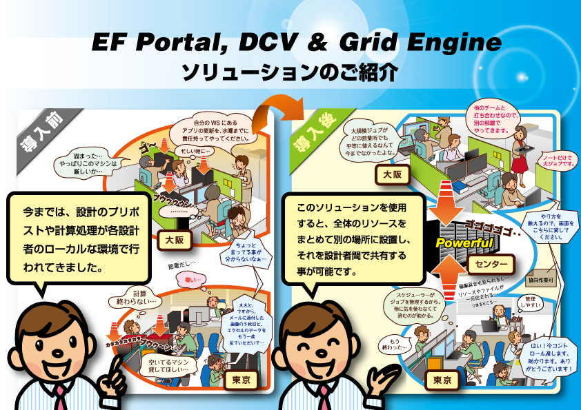 Infiniware 株式会社は、30年以上に渡るHPC分野での経験に基づいて、自動車産業、半導体企業などの製造業をはじめ、大学、研究所などのお客様にソリューションを提供しております。Grid Engine、ドイツ NI SP社の EF Portal(旧EnginFrame)、Amazon社の Amazon DCV(旧NICE DCV)、ルクセンブルグ NoMachine社の NoMachine、アメリカ Open iT社の LicenseAnalyzer など、ジョブスケジューラー、Webポータル、リモート可視化ツール(2D/3D及びCAE対応)、ライセンス資産管理ツール(ライセンスの監視や履歴レポーティング)などの海外ソフトウェアをソリューションとして提供しております。